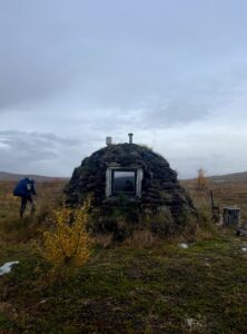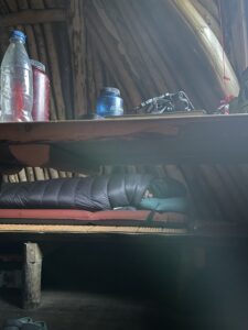 Været forsatte ufyselig, og vi valgte derfor å gå til en gamme i Stabbursdalen. Vi måpte av begeistring da vi åpnet døren til gamma, ingeniørkunsten var stor og håndverket fantastisk. Det var underbart med noen timer innendørs, og lyet ga også fine arbeidsforhold for reparasjon av sekken min. Karoline hjalp meg på nydelig vis og sydde sine stødige sting. Morgenen etter var det is på bakken og sol på himmelen. Starten var altså upåklagelig, men det skulle snart snu.