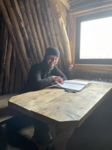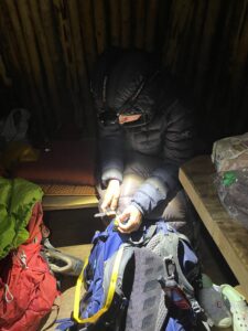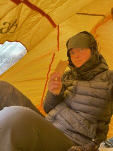 Med jevne mellomrom har vi vært innom sivilisasjonen. Da har det hendt at vi har kommentert hvor like folk ser ut. Dette deilige hovmodet varer helt til vi ser på oss selv og registrerer. Identiske fjellsko, identiske crocs, identiske luer, mørkeblå skalljakker, mørkeblå dunjakker, mørkeblå shorts, grønne ullbuffer, svarte turbukser og svarte ullhansker. I planleggingsfasen diskuterte vi hvordan vi ønsket å bo; i hytte, telt eller glasshus. Vi endte hovedsakelig på en hybrid mellom de to sistnevnte. Kall det gjerne telt med vinterhage.