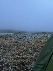 Ved hjelp av oppdemmet sinne klarte vi å hamre teltpluggene fast i grusen nedenfor Beahcegealháldi, Kvænangens høyeste fjell. I løpet av våre måneder på tur har vi sett mange fantastiske steder. Dette føyer seg ikke på listen, og besøk frarådes. Eline mente omgivelsene var mest sammenlignbare med et sovjetisk steinknuseverk, og jeg nikket bifallende. Femti gråtoner har aldri vært mindre spennende.